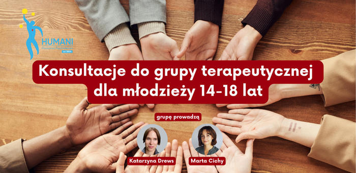 Trwają konsultację do grupy terapeutycznej dla młodzieży w wieku od 14 do 18 lat. Grupa będzie pracowała od 4 marca do końca czerwca 2026.